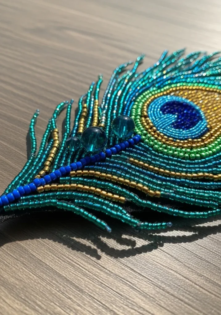 • Shimmering Peacock Feather Bead Embroidery Motif