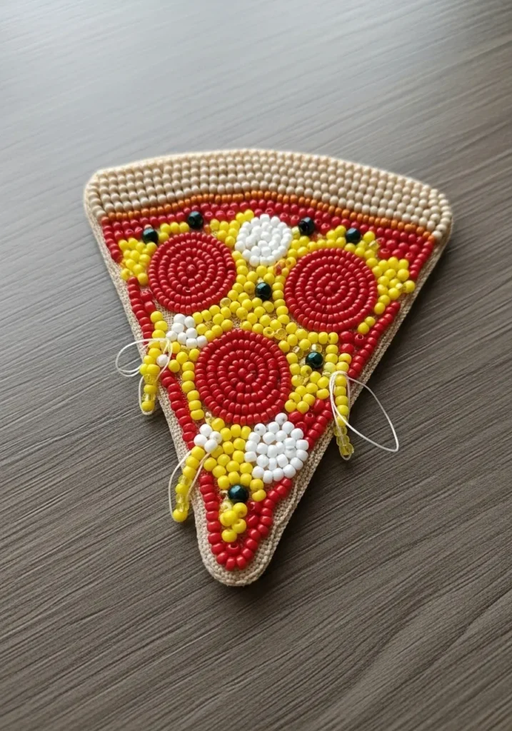 • Whimsical Pizza Slice Bead Embroidery Patch