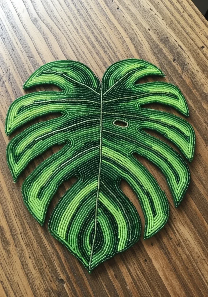 Tropical Monstera Leaf Bead Art
