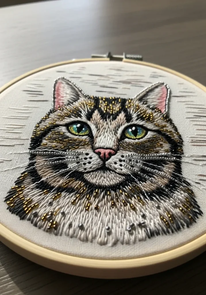 I am completely charmed by how lifelike this piece feels. The mix of smooth stitching and tiny bead highlights makes it so satisfying to work on because you can see the personality forming with every stitch. If you are into pet portraits or love creating meaningful decor, this is such a rewarding idea to try. Watching those eyes come to life is honestly the moment that makes the whole project worth it.