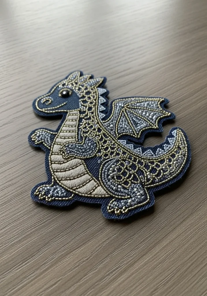 I cannot resist a cute mythical creature, and this one is just too charming. The mix of smooth stitching and raised beadwork makes it such a fun project to experiment with. If you are into fantasy vibes or love adding unique patches to jackets and bags, this design is a total winner. It looks intricate but you can break it down scale by scale, which makes the process feel manageable and honestly kind of addictive.