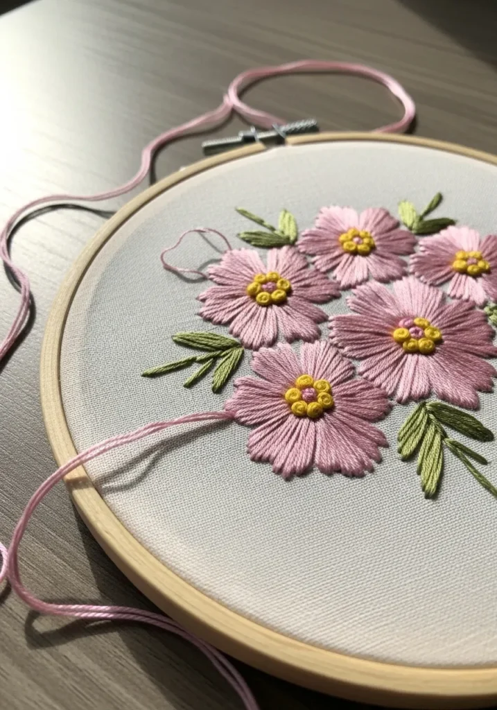 I always think daisies are the perfect stitch confidence booster. They look polished but are surprisingly simple to build petal by petal. When I make something like this, I get to practice clean satin stitches and those cute little knot centers without feeling overwhelmed.