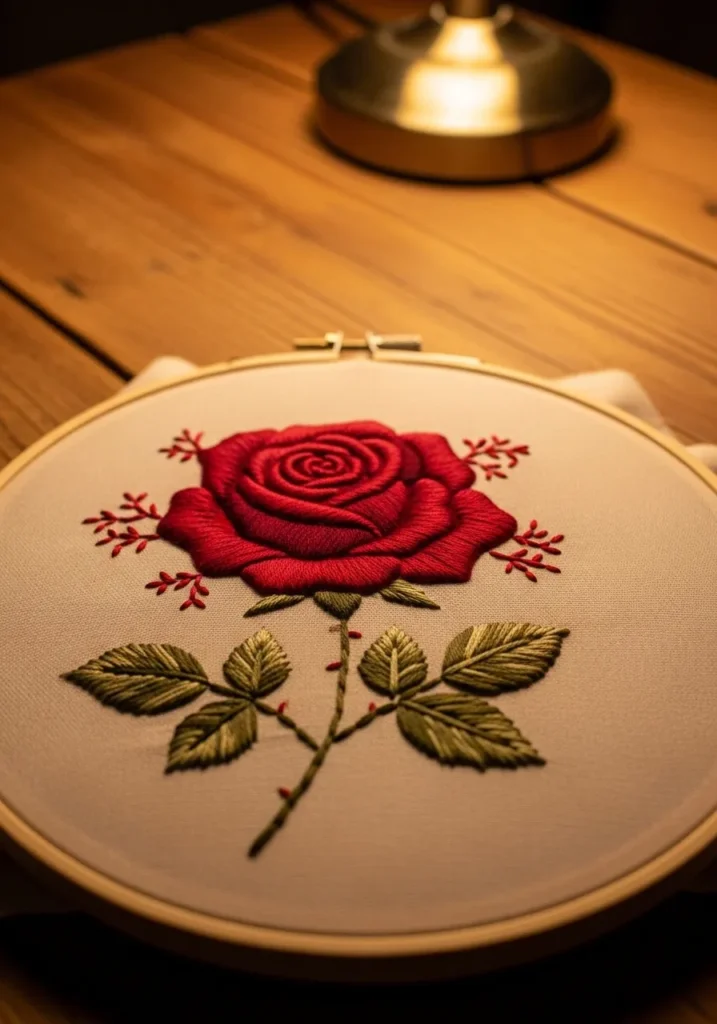 Roses are such a classic for a reason. I love how working on layered petals teaches me so much about shaping and shading with thread. It feels like creating a tiny textile sculpture right on the fabric.