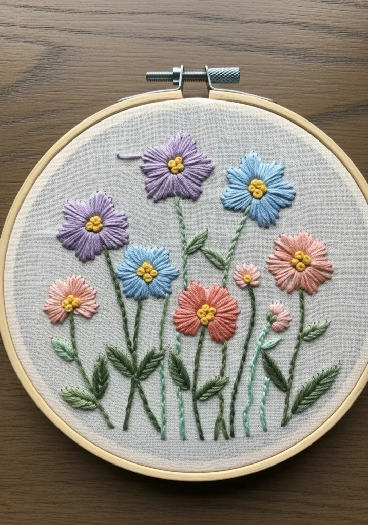 I adore projects like this because they let me test different stitches in one single design. It feels like a playful sampler without looking like practice work. Plus, mixing soft pastel shades always makes my stitching time feel light and joyful.