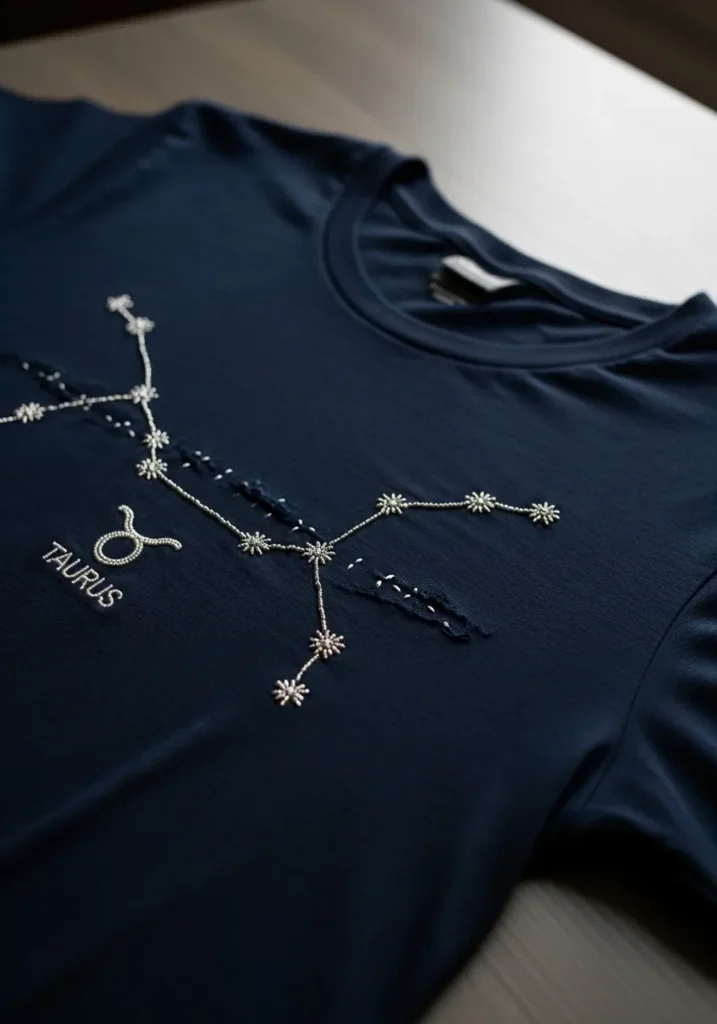 Taurus Constellation Bead Embroidery T Shirt