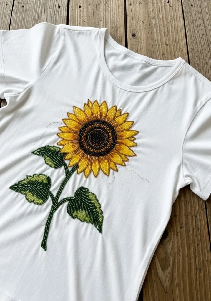 Bright Sunflower Bead Embroidery T Shirt