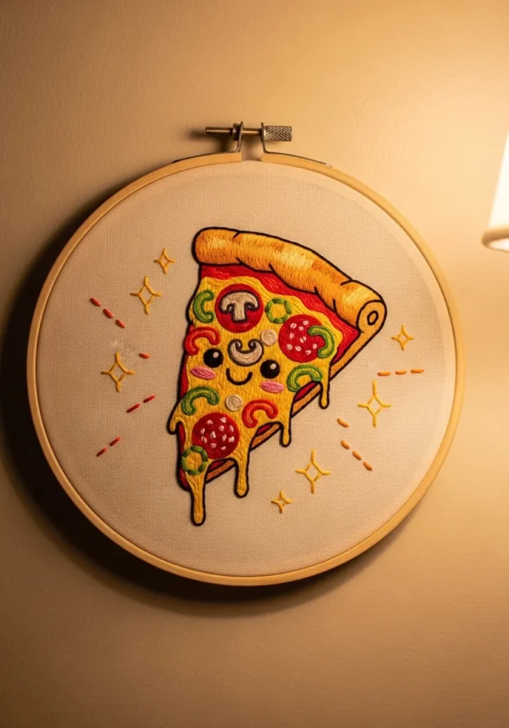 Playful Pizza Slice Embroidery Art