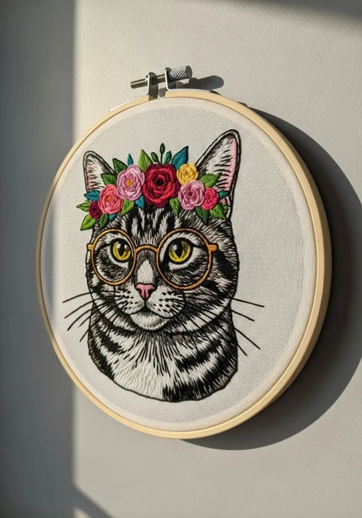 Floral Crown Cat Portrait Embroidery