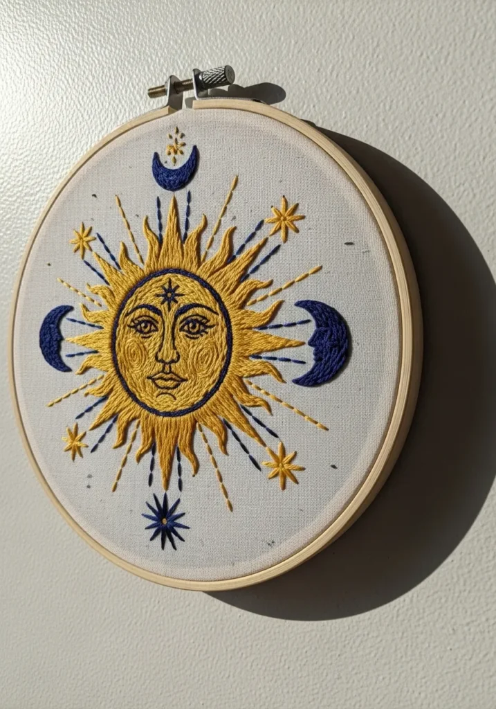 Celestial Sun and Moon Symbol Embroidery
