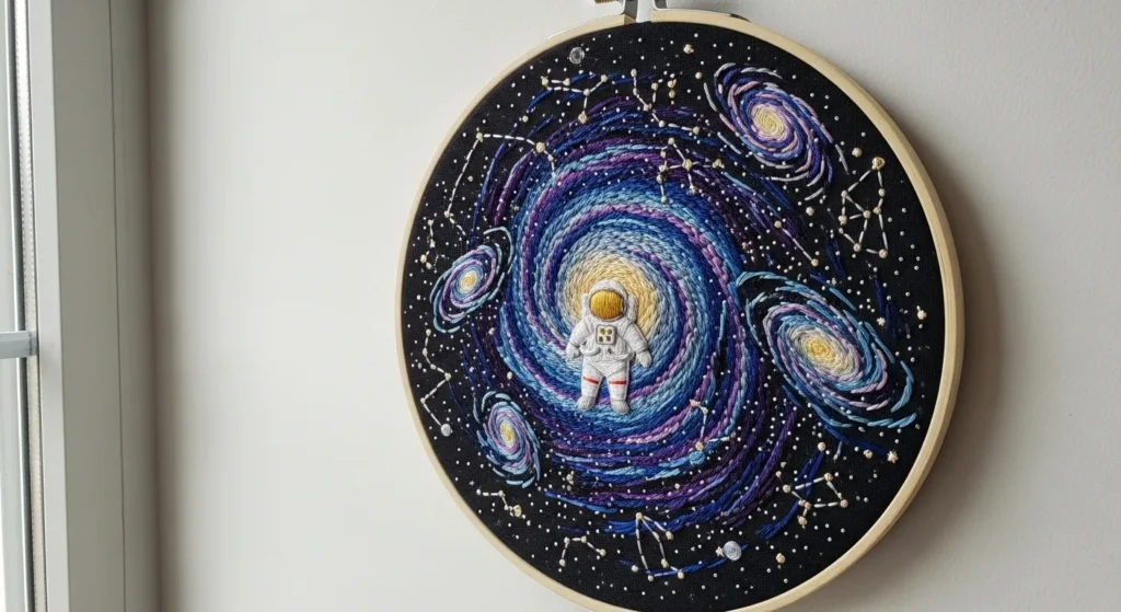 Galaxy Swirl with Floating Astronaut Embroidery