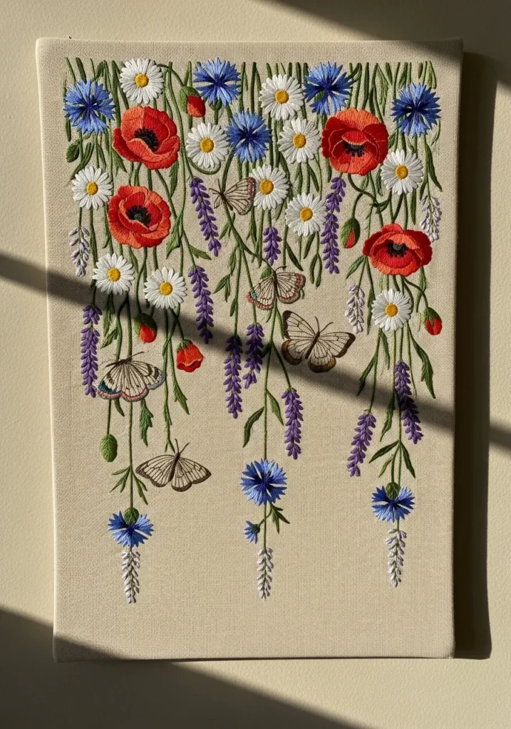 I adore floral embroidery because it never goes out of style. This kind of wall art makes a space feel softer and more thoughtful. It is perfect if you want something romantic and colorful without repainting an entire room.