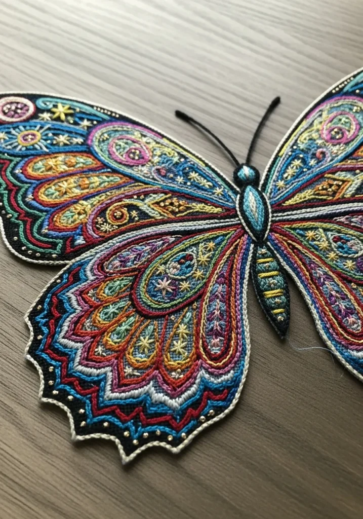 Vibrant Butterfly Wing Embroidery
