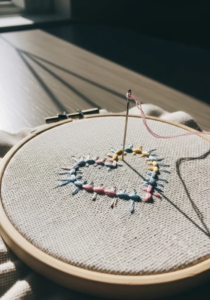 I love projects like this because they remind me that embroidery does not have to be complicated to be beautiful. A basic running stitch is often the very first stitch I learned, and seeing it form a sweet little heart still makes me smile. It is such a confidence booster for beginners.