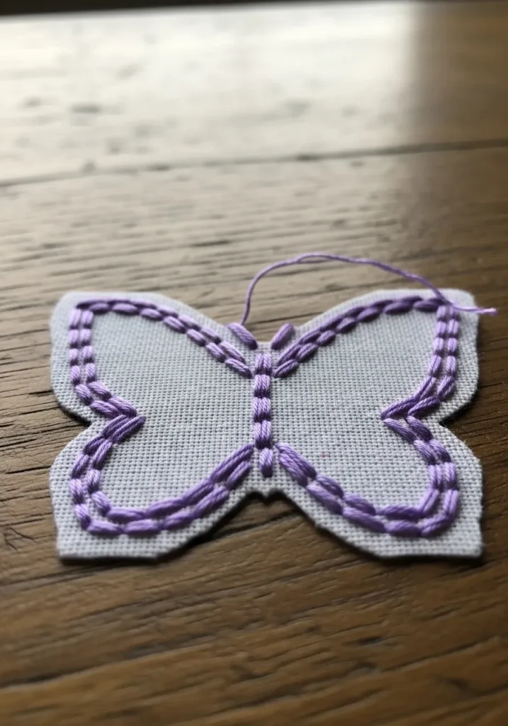 Butterflies are one of my favorite beginner motifs. The curves give you a chance to practice smooth outlines, and the finished piece always feels a little whimsical. It is a great way to build confidence with basic stitches.