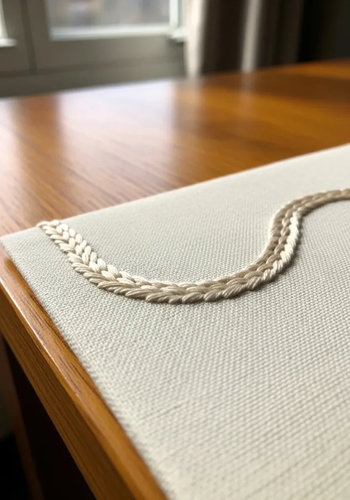Braided Chain Border on Linen Fabric