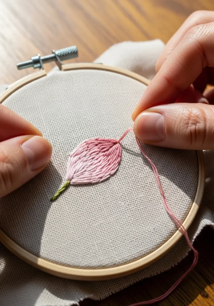 I think working on one small petal at a time is such a great way to build confidence. When I was learning satin stitch, focusing on tiny shapes helped me improve without feeling overwhelmed. It is such a satisfying technique once you see that smooth finish appear.