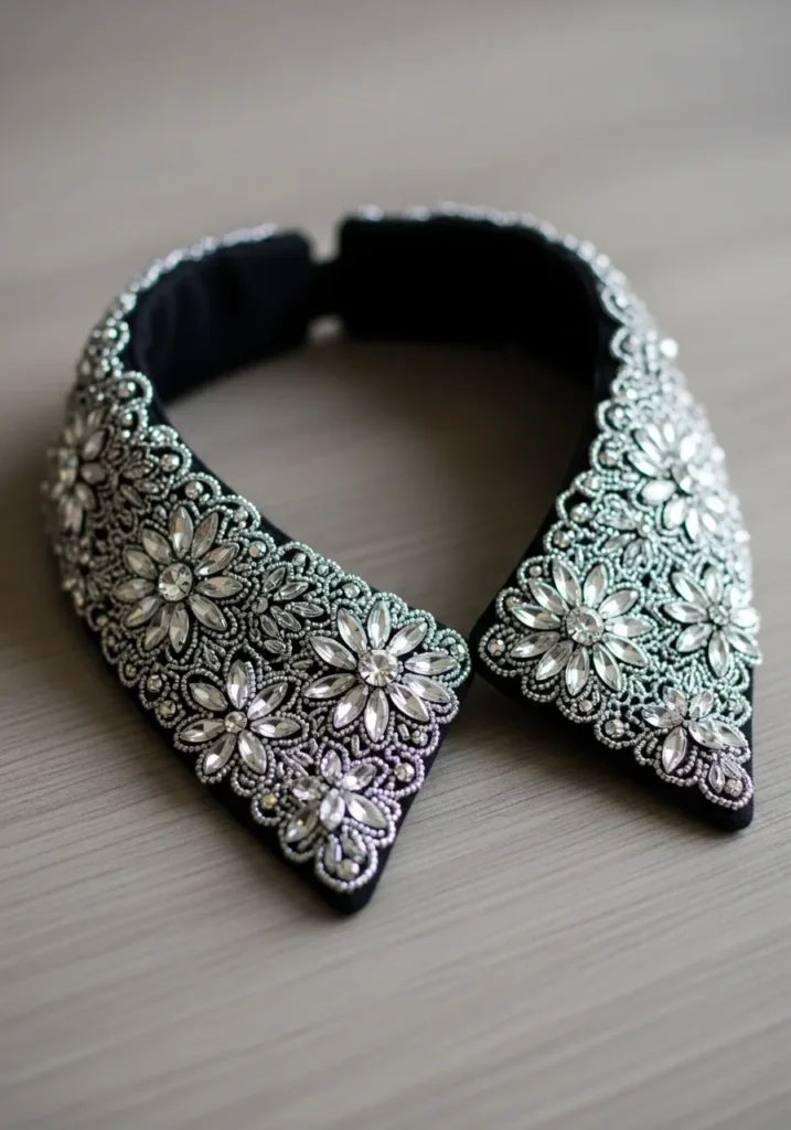 I think embellished fabric jewelry is such a clever idea. It gives you all the glamour of statement pieces but with a softer, handcrafted touch. This is the kind of accessory that can completely transform a simple outfit and make you feel instantly put together.