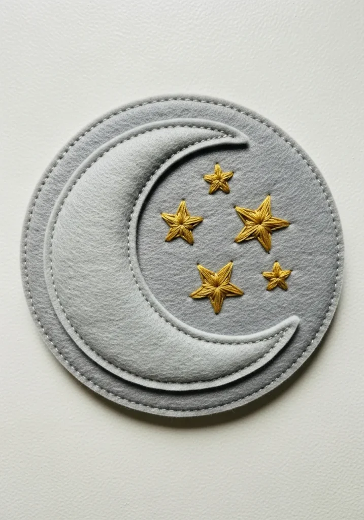 I absolutely love how dreamy and calming this piece feels. It has that soft, storybook quality that makes a room feel instantly more magical. If you are into celestial themes, this is such a sweet project to try. The shapes are simple, so it feels very doable, but the layered felt and star stitching make it look far more intricate than it actually is. It is one of those crafts that looks impressive on the wall yet comes together in such a relaxing, satisfying way.
