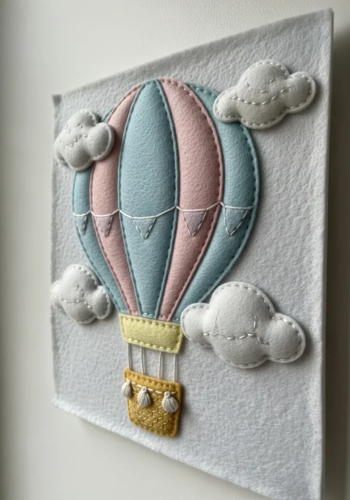 Pastel Hot Air Balloon Felt Embroidery Art