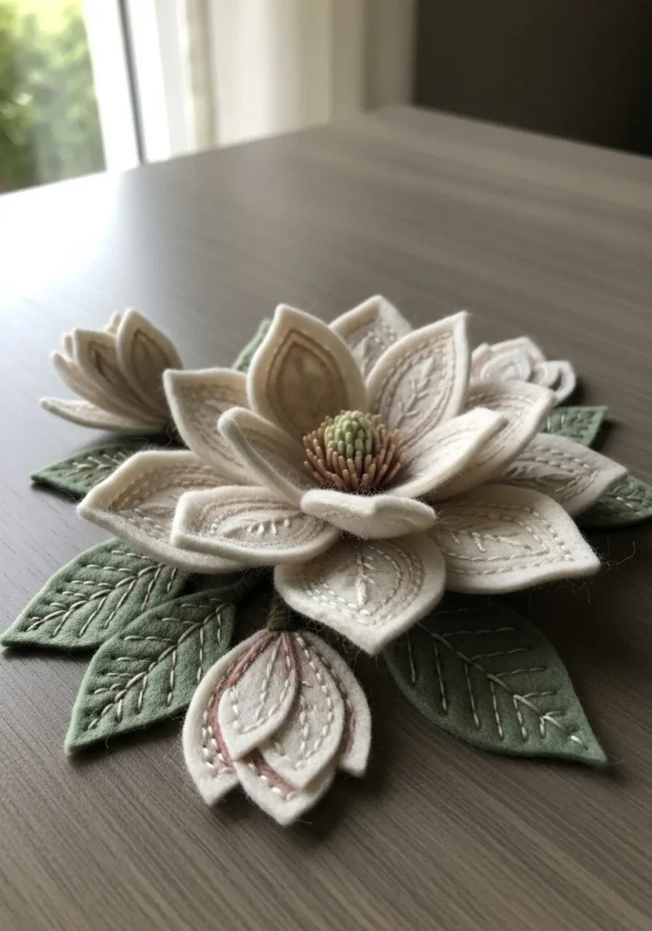 Layered Magnolia Blossom Felt Embroidery