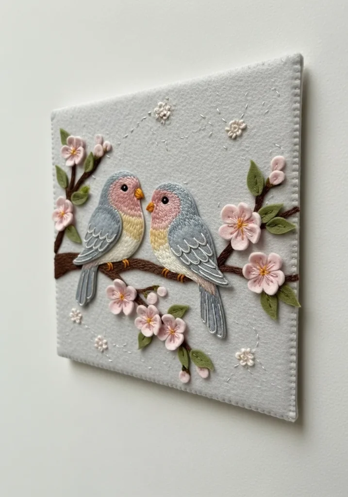 Lovebirds on Blossom Branch Felt Embroidery