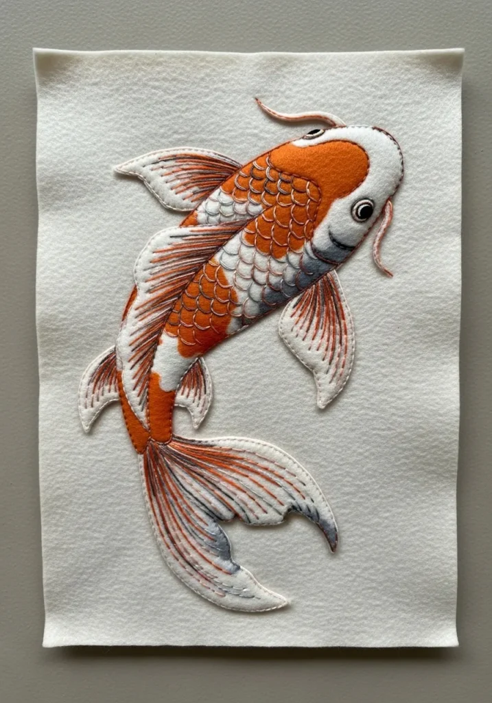 Graceful Koi Fish Felt Embroidery Art