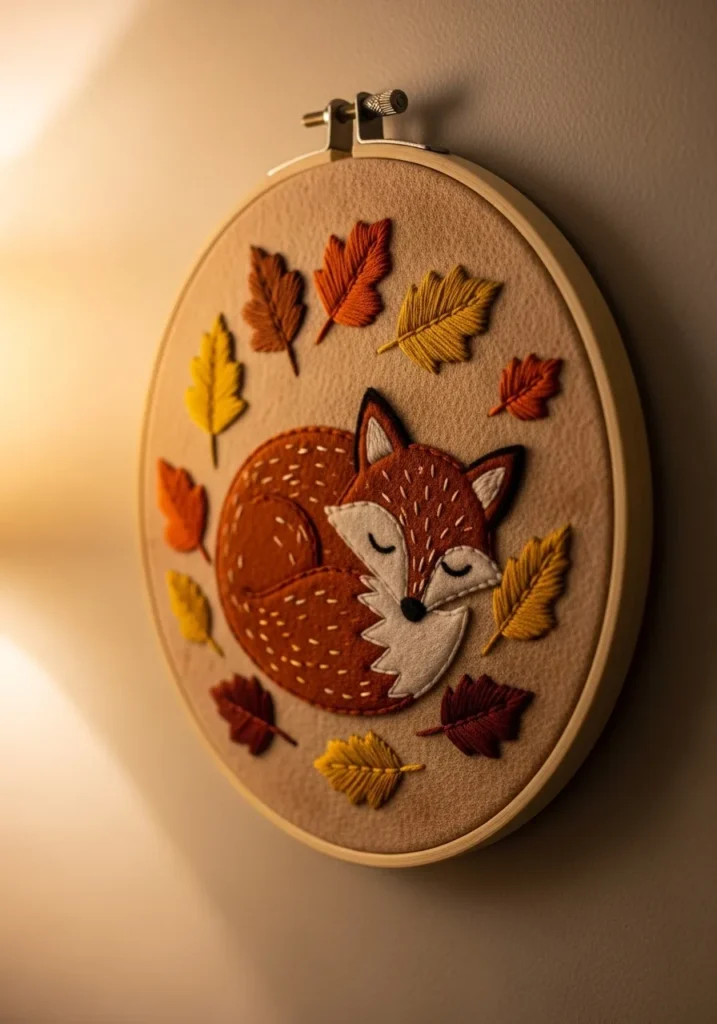 Cozy Autumn Fox Felt Embroidery Hoop