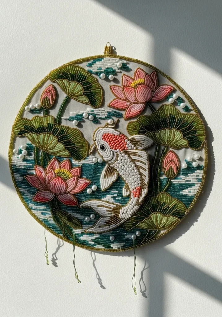 I am completely in love with how peaceful this piece feels. It has that timeless garden vibe that instantly softens a room. If you enjoy storytelling through beadwork, this is such a beautiful theme to try. Stitching the fish and petals step by step feels calming, almost like creating your own little pond scene. It looks intricate, yet it is really about layering colors and shapes thoughtfully. Hanging something like this on the wall makes your space feel artistic and personal in the loveliest way.