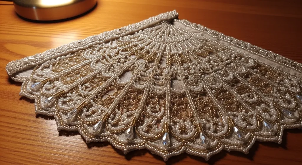 I love how tiny beads can completely transform simple cloth into something that feels rich, detailed, and quietly luxurious.