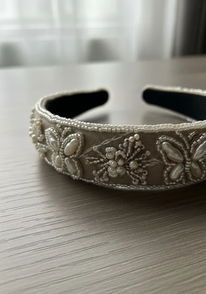 I love projects like this because they feel fancy but are surprisingly doable. If you enjoy making accessories, a beaded headband is such a fun way to experiment with floral patterns on a smaller scale. Stitching each little flower is oddly satisfying, and seeing the pearls catch the light makes all the effort worth it. I can totally imagine wearing this to a wedding, brunch, or even just to make an ordinary day feel a bit more special.