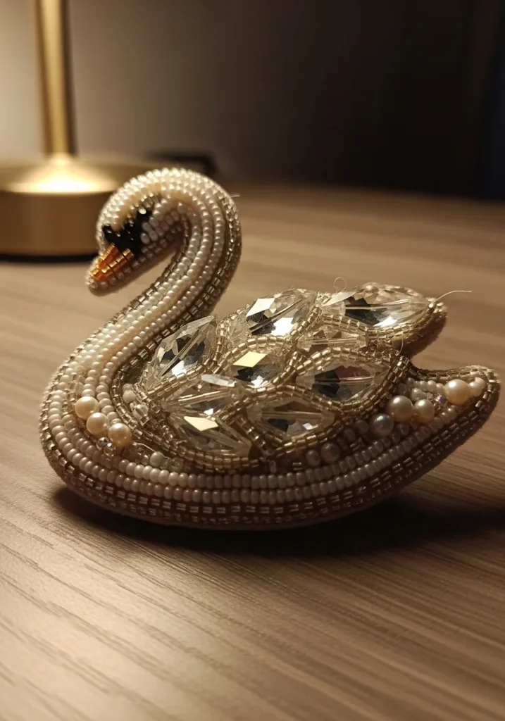 I honestly think this little swan is pure charm. It feels delicate and luxurious, yet playful at the same time. If you love making statement accessories, this is such a satisfying project to try. Building up the shape with rows of beads is easier than it looks, and placing those oversized crystals is the fun reward at the end. I can already picture it pinned to a blazer or a special occasion dress, adding just the right touch of handmade sparkle.
