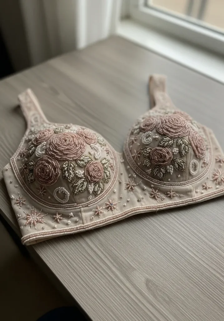 I find this kind of project so empowering to make. There is something special about turning everyday lingerie into a true work of art. If you love floral designs and enjoy detailed hand stitching, this is such a rewarding piece to try. Building each rose petal bead by bead feels almost therapeutic. The final result looks couture and personal, and knowing you created it yourself makes it even more beautiful.