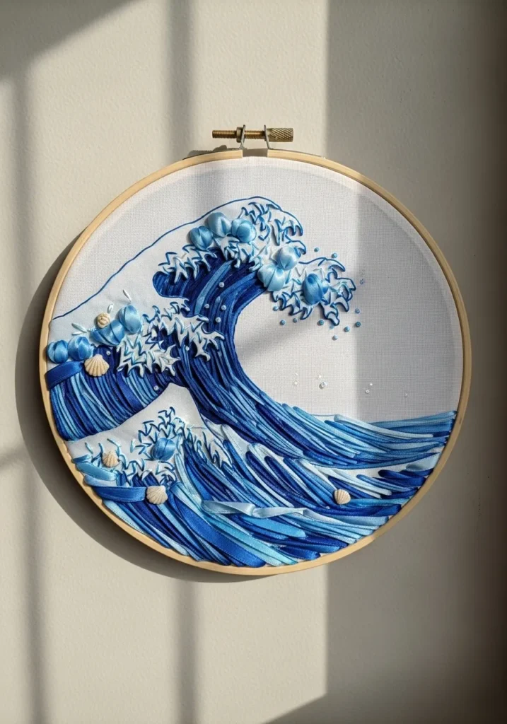 Ocean Wave Ribbon Embroidery Art
