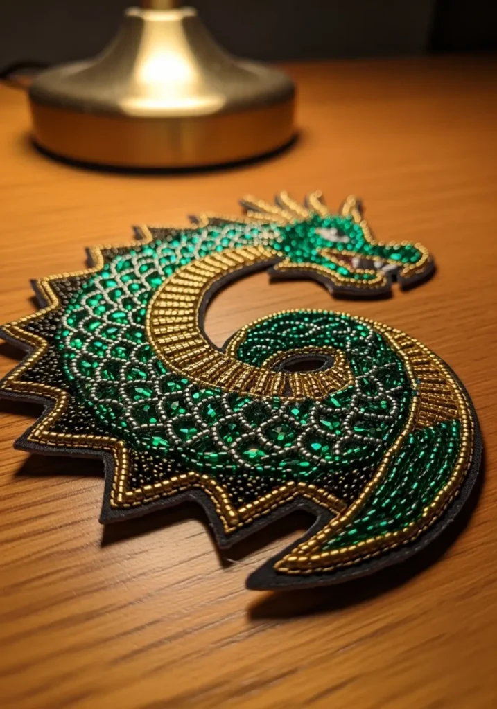 • Emerald Dragon Bead Embroidery Applique