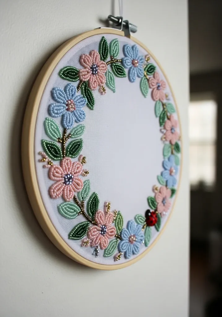 • Pastel Floral Wreath Bead Embroidery Hoop