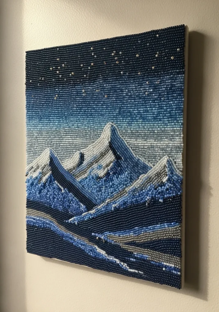 • Snowy Mountain Night Bead Embroidery Wall Art