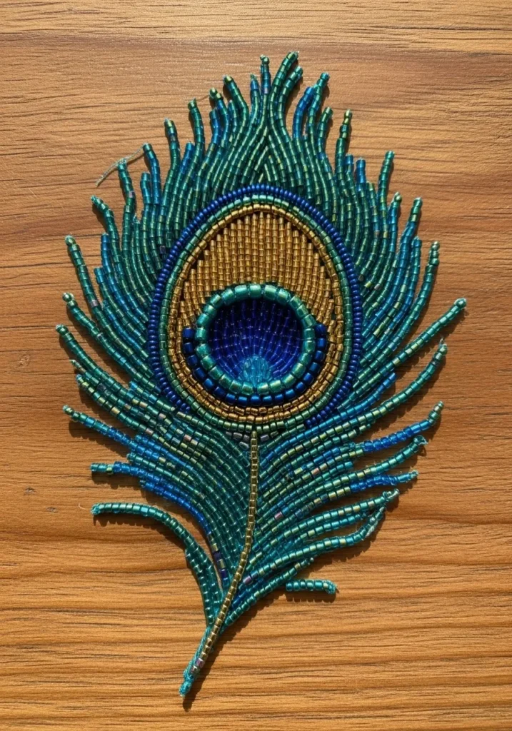 Peacock Feather Bead Embroidery Applique