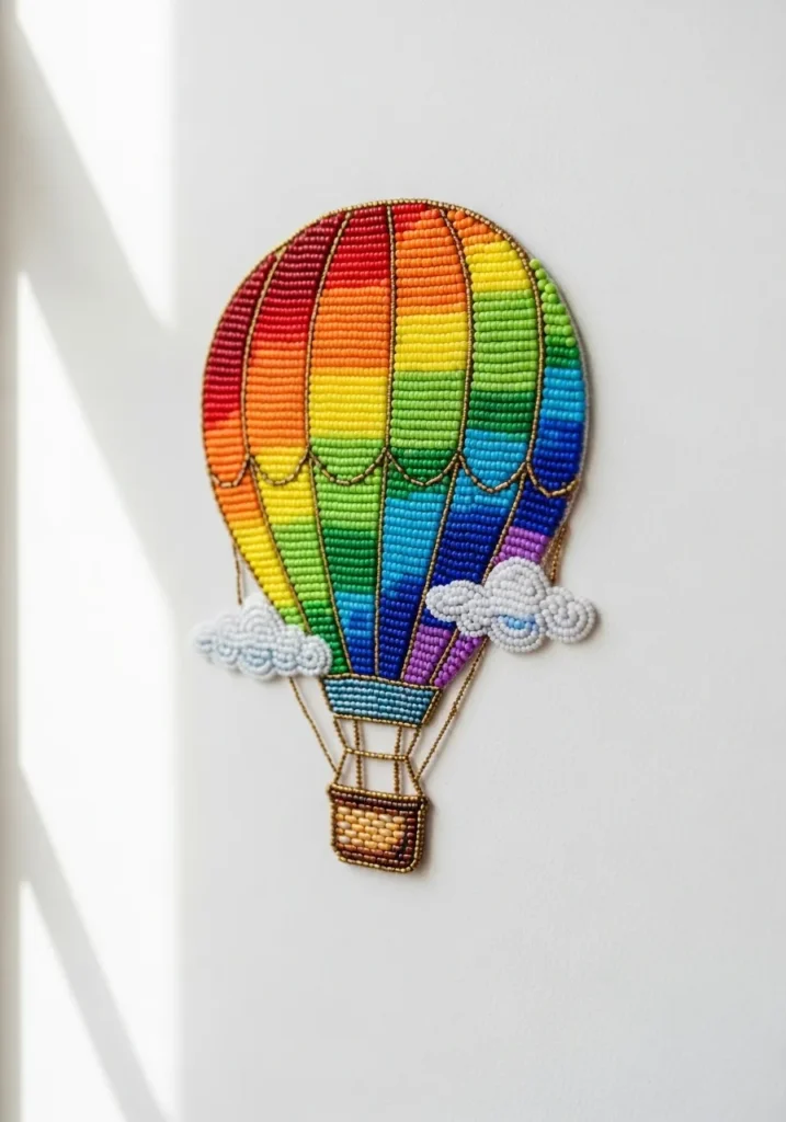 • Rainbow Hot Air Balloon Bead Embroidery Patch