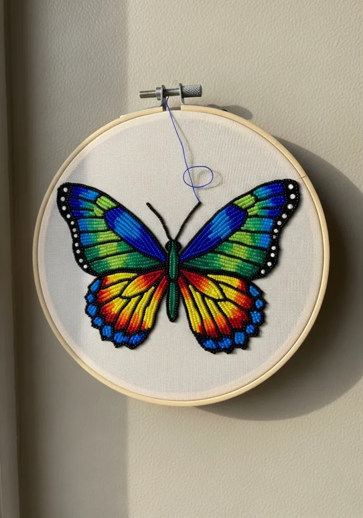 • Vibrant Rainbow Butterfly Bead Embroidery Art