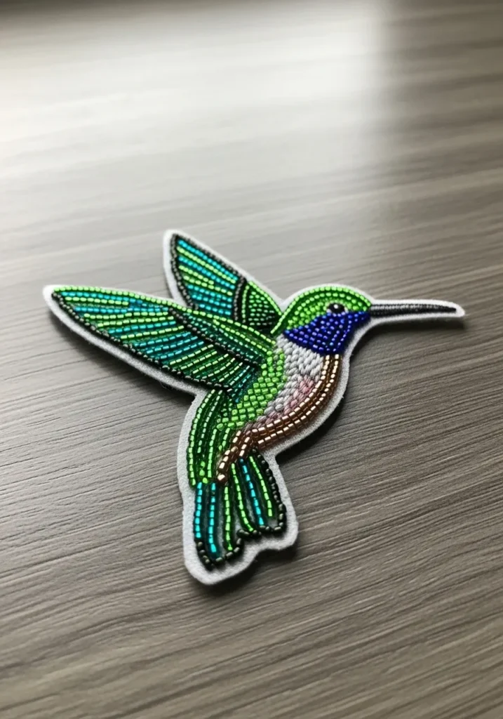 Shimmering Hummingbird Bead Embroidery Patch