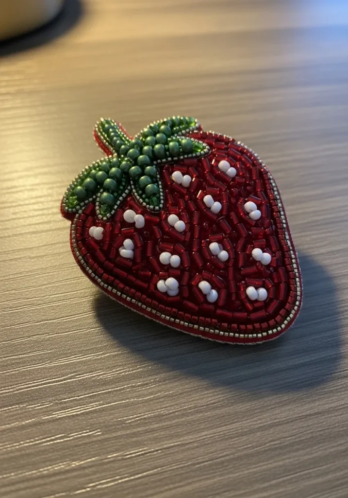 I cannot get over how cute this one is. Food inspired bead embroidery always makes me smile, and this strawberry feels extra sweet. If you’re into fun accessories that spark compliments, this is such a satisfying project to try. The shape is simple, which makes it beginner friendly, but the mix of bead sizes keeps it interesting. I would totally pin this on a denim jacket or tote bag for a pop of color that feels playful and handmade.