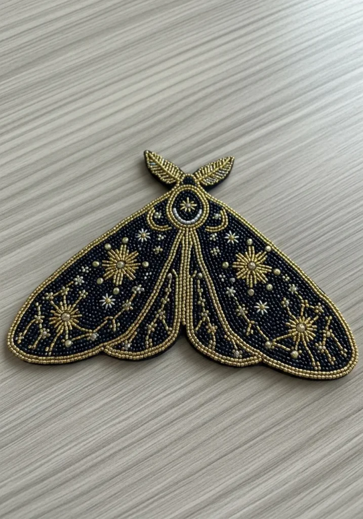 Celestial Moth Bead Embroidery Statement Piece
