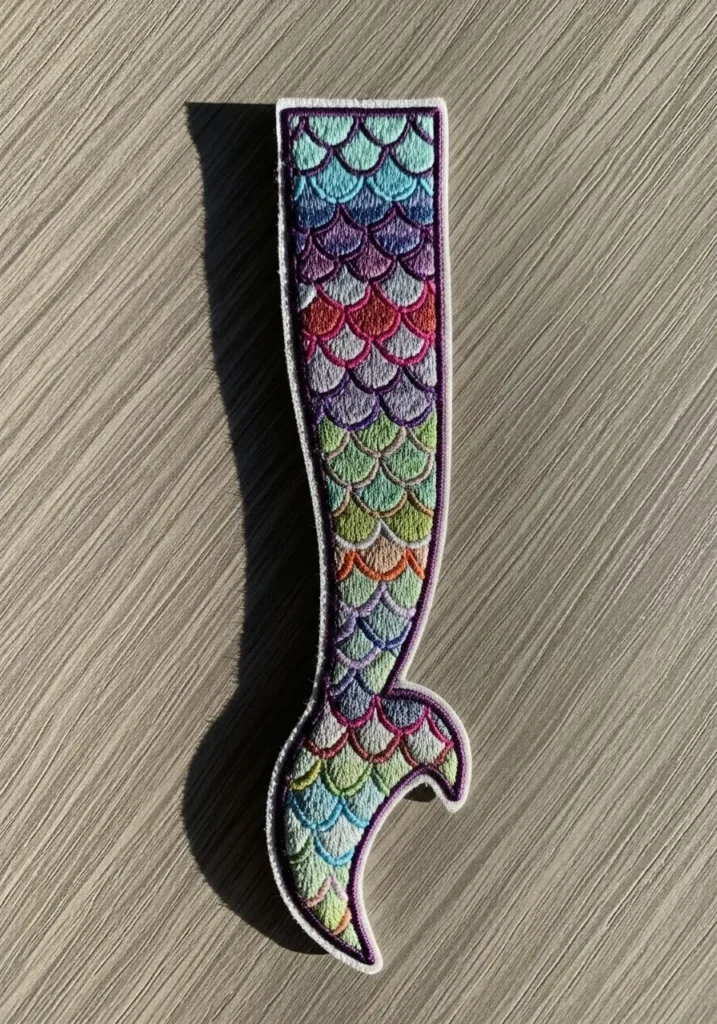 I think patches are such a fun way to experiment with color. You can sew them onto jackets, bags, or even display them as mini art pieces. If you love magical themes and bright palettes, this mermaid tail design is pure creative joy.