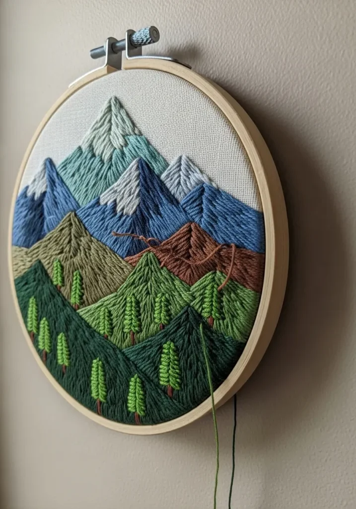 I think landscape embroidery is such a rewarding challenge. Building each layer slowly feels almost meditative. If you enjoy nature inspired designs, this mountain scene is a lovely way to experiment with shading and dimension in your stitching.