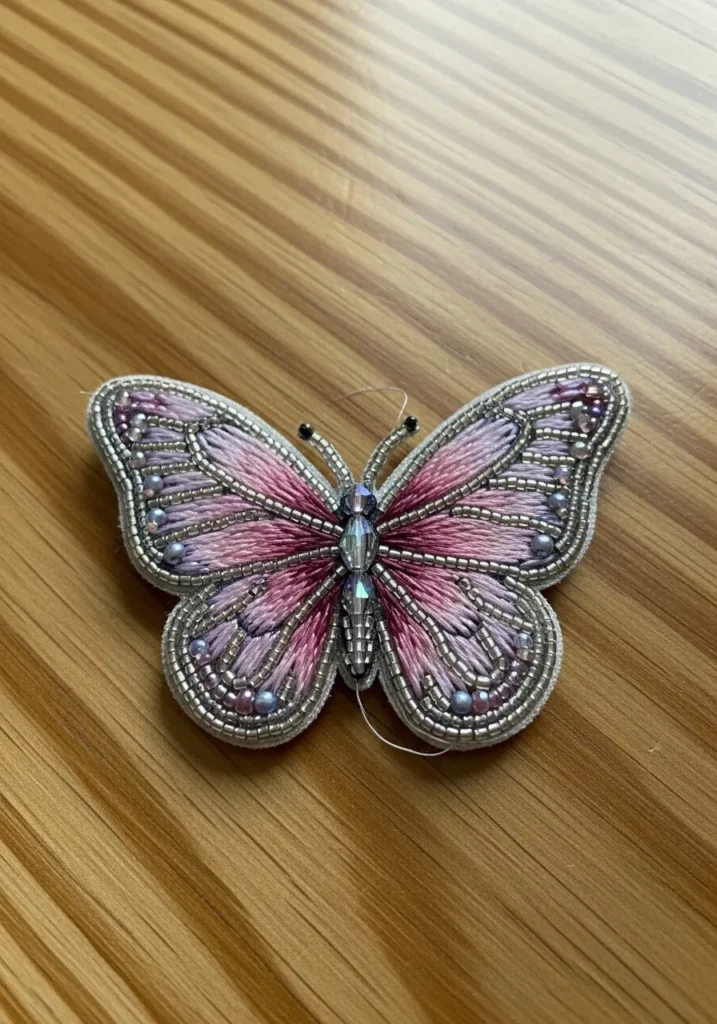 • Delicate Pink Butterfly Bead Embroidery
