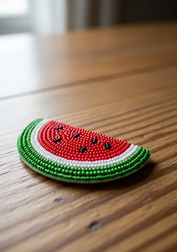 Juicy Watermelon Slice Bead Embroidery Patch