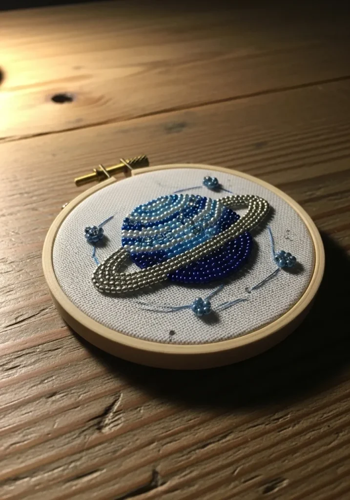 • Mini Saturn Planet Bead Embroidery Hoop