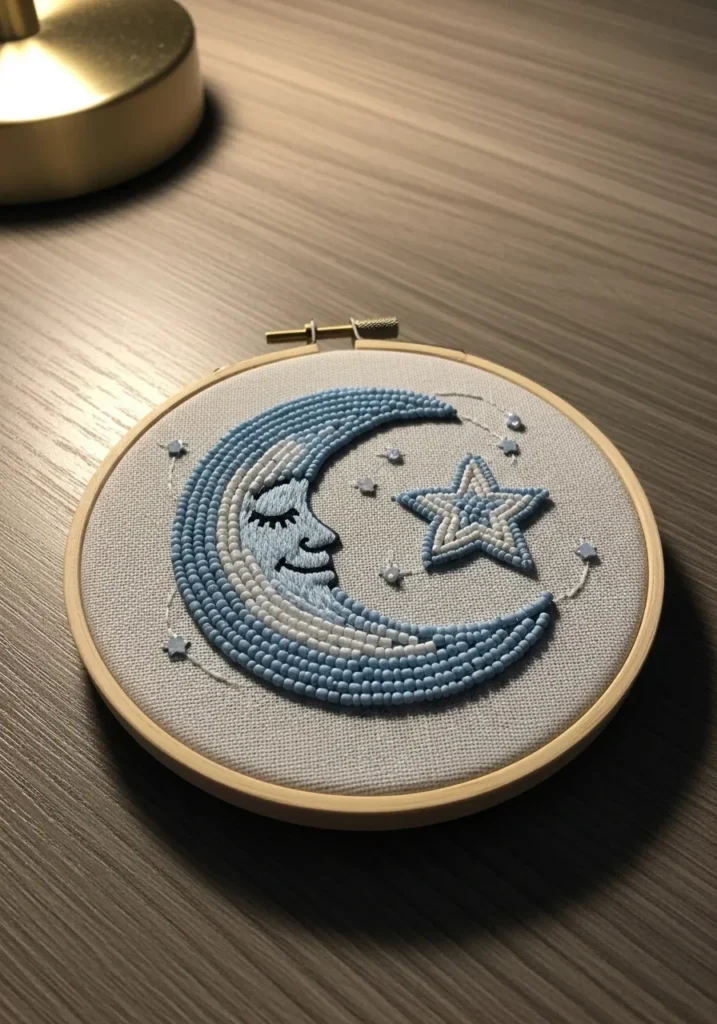 • Dreamy Crescent Moon Bead Embroidery Hoop