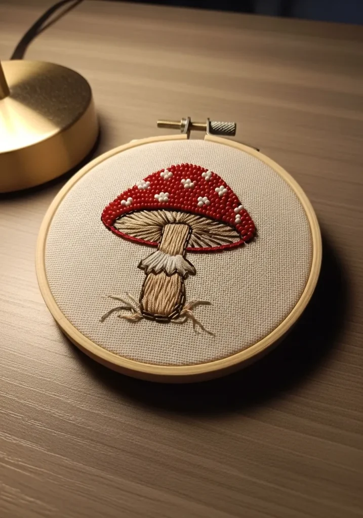 • Cute Toadstool Bead Embroidery Hoop