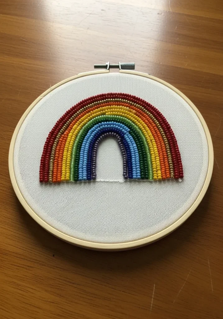 Classic Rainbow Arc Beadwork Embroidery Hoop